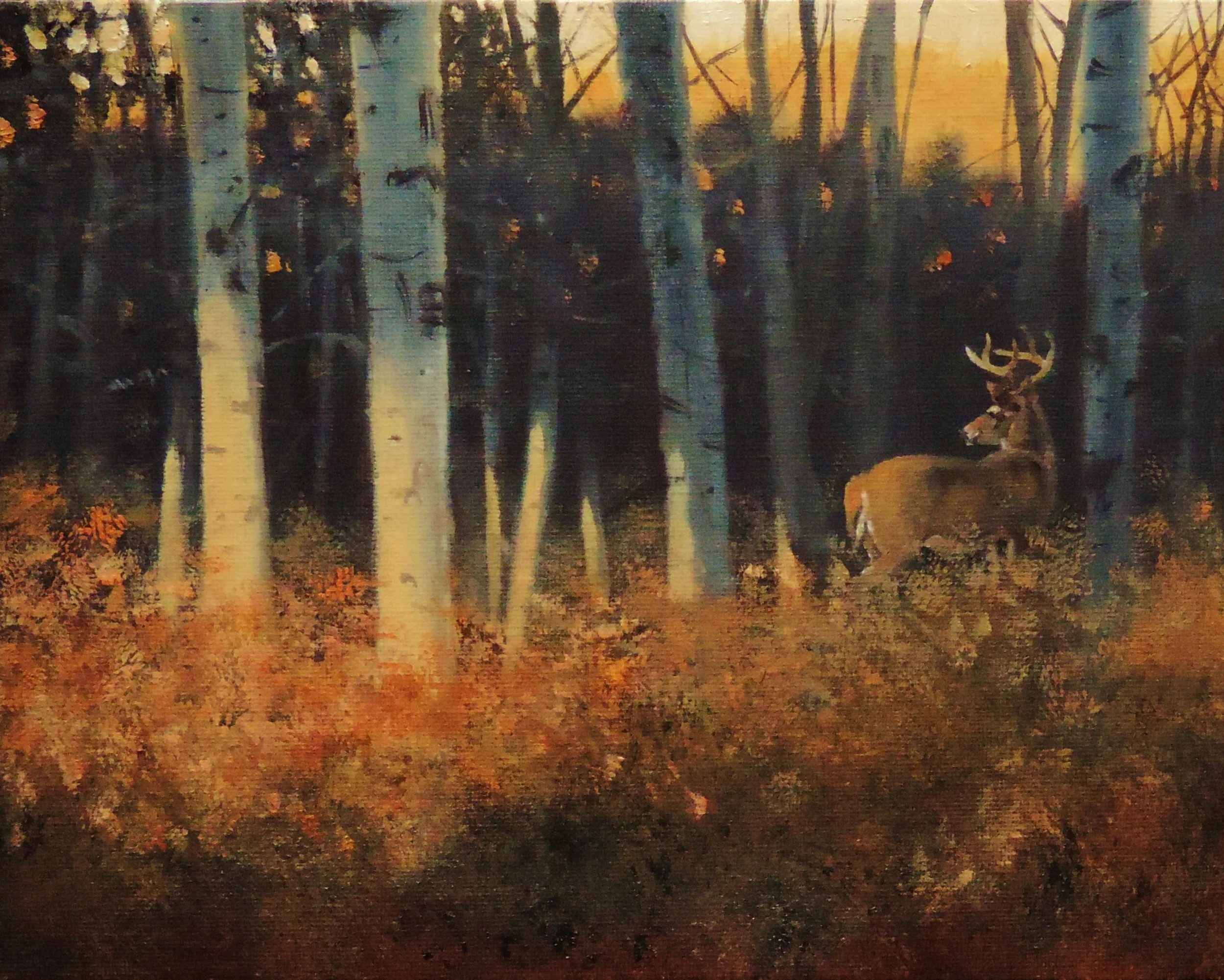 Buck in Aspens by Mark Cudney, Oil - $490
